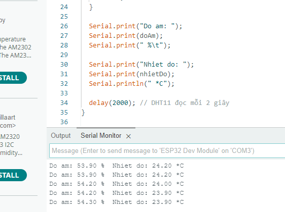 Bài 4: Thu thập nhiệt độ và độ ẩm sử dụng DHT11 từ ESP32
