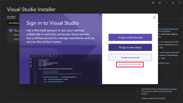 Chọn Skip and add account later để vào việc chính cho nhanh.
