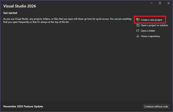 Sau khi cài đặt xong workload ở bước trước, tại giao diện chính của Visual Studio, chọn Create a new project.Sau khi cài đặt xong workload ở bước trước, tại giao diện chính của Visual Studio, chọn Create a new project.