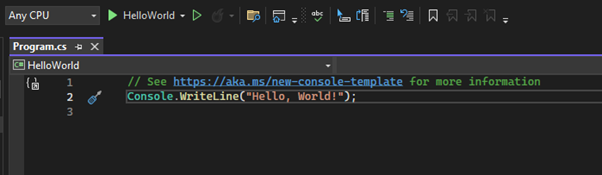 Hãy mở lại file code Program.cs. Với các phiên bản Visual Studio mới, bạn sẽ thấy code được viết thẳng ra file, trông như thế này: