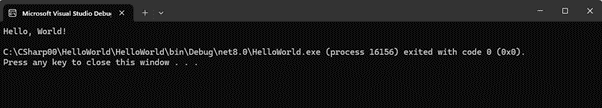 Khi cửa sổ dòng lệnh hiện ra với dòng chữ Hello, World! tức là mọi người đã cài đặt thành công, Code C# đã được biên dịch và chạy.