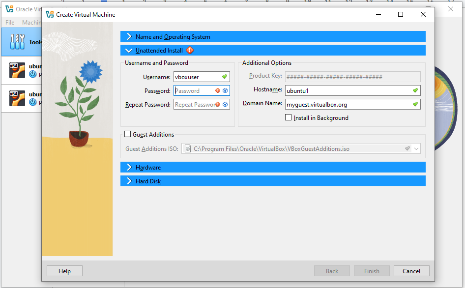 - Sang phần Unattended Install để setup user. Sau khi cài đặt password xong thì nút Finish sẽ chọn được và như thế là hoàn tất phần cài đặt ban đầu 🙂.