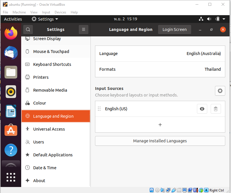 Right click -> Settings -> Language and Region -> English (Austrailia).