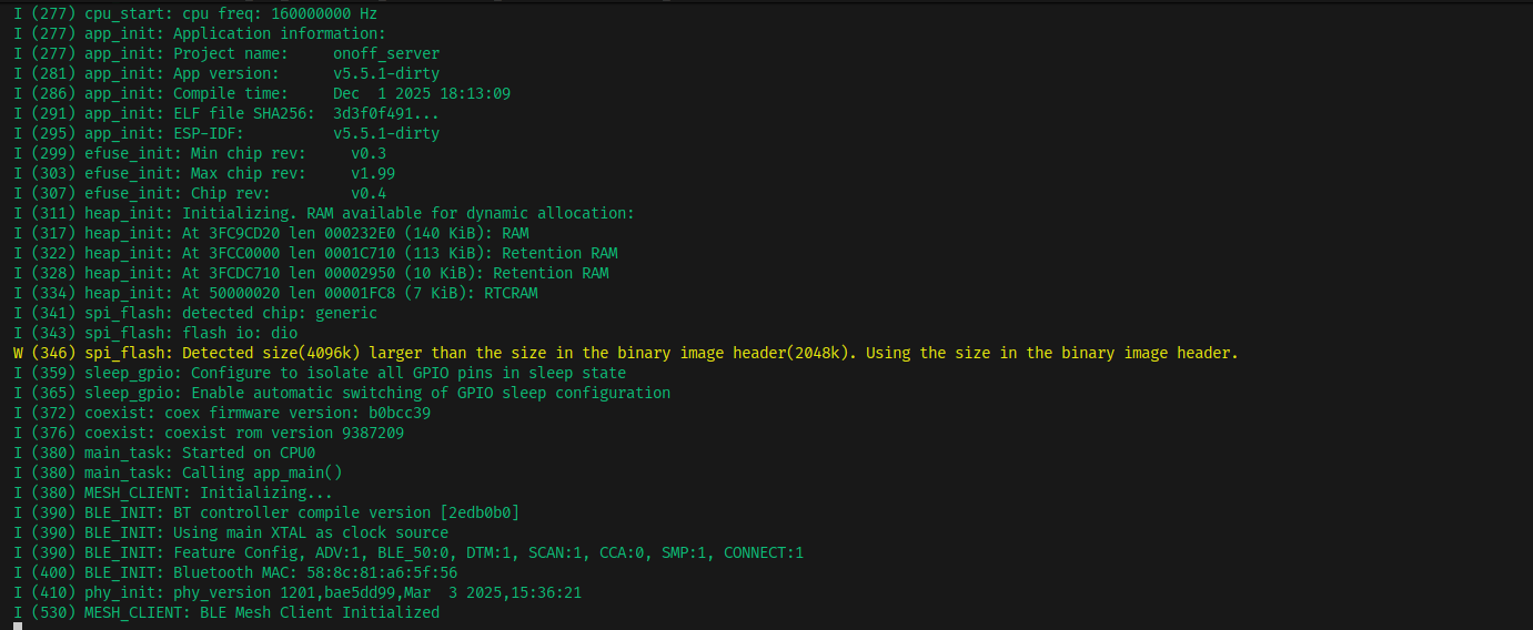 Về cơ bản, khung chương trình (khởi tạo NVS, Bluetooth Controller, Mesh Stack...) của Node Client giống hệt Node Server ở bài blog số 3 mà các blog trước đã giải thích rất chi tiết rồi. Sự khác biệt nằm ở model chúng ta khai báo và các hàm callback xử lý sự kiện.